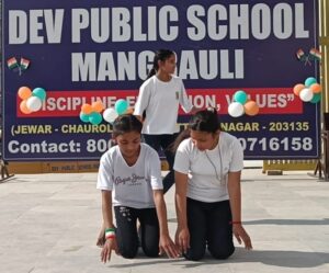 जेवर। चैरोली मार्ग मंगरौली स्थित देव पब्लिक स्कूल में 26 जनवरी के अवसर पर ध्वजारोहण कर धूमधाम से मनाया राष्ट्रीय महापर्व गणतन्त्र दिवस के अवसर पर स्कूल प्रबन्धक विजय कुमार शर्मा एवं एमपी0 सिंह तालान व मंगरौली के पूर्व प्रधान जे0पी0 शर्मा द्वारा राष्ट्रीय ध्वज तिरंगा फहराकर आजादी के मतवाले अमर शहीदों को याद किया गया। ध्वजारोहण के बाद स्कूल स्टाफ सहित कार्यक्रम में आने वाले आगन्तुकों ने स्कूली छात्र-छात्राओं के साथ मिलकर संगीत की सुरीली धुन पर परम्परागत तरीके से राष्ट्रगान और राष्ट्रीय गीत बन्देमातरम का गुणगान किया गया।