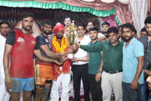 श्री नव दुर्गे मन्दिर पर चेयरमेंन नारायण माहेश्वरी के सौजन्य से आयोजित पुरूष कबडडी टूर्नामेंट के फाइनल में बर बाबा की टीम ने बाजी मारी